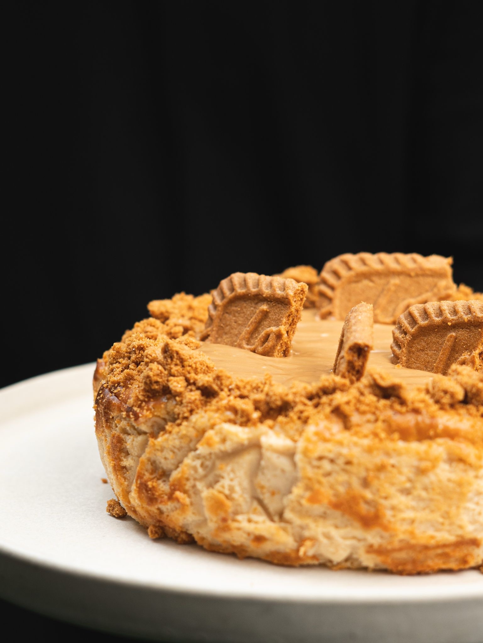 Cheesecake clásica de horno al estilo BakerBoyz con salsa Biscoff y galleta lotus.